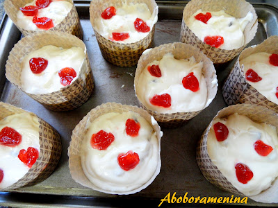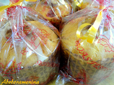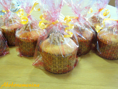 A receita dos bolinhos é a mesma que fiz aqui, apenas incrementei o aroma com raspas de limão e o sabor com cerejas ao Maraschino picadas, assei-os em mini forminhas de panetone, dei um toque  na decoração e embrulhei-os nos pacotinhos próprios...ficaram uma graça! ; )